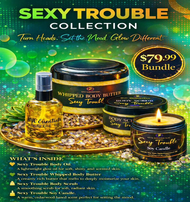 Turn heads and leave a lasting impression with the Sexy Trouble Collection. This bold, seductive line is crafted with premium natural ingredients that hydrate, nourish, and leave your skin feeling irresistibly soft.